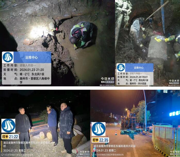 1月23日,有市民反映鐵路片區(qū)下坡處地面有積水,附近有學(xué)校,周邊住戶(hù)也較多,對(duì)市民出行造成極大安全隱患。測(cè)漏人員第一時(shí)間到場(chǎng)勘查,排查后發(fā)現(xiàn)漏點(diǎn)在下坡處拆遷區(qū)內(nèi),工作人員及時(shí)與當(dāng)?shù)厣鐓^(qū)居委會(huì)和相關(guān)部門(mén)取得聯(lián)系,經(jīng)過(guò)多方協(xié)調(diào),滿足施工條件后,立即組織搶修隊(duì)伍進(jìn)行開(kāi)挖,在寒風(fēng)凜冽的深夜,搶修人員爭(zhēng)分奪秒,全然顧不上他們已凍得通紅的雙手,只希望以最快速度完成改造作業(yè),最大程度減小停水作業(yè)對(duì)居民的影響。當(dāng)晚21點(diǎn)25分歷時(shí)3小時(shí)將DN100管道漏水點(diǎn)搶修完畢,保障了極寒天氣下周邊居民、學(xué)生出行的安全。