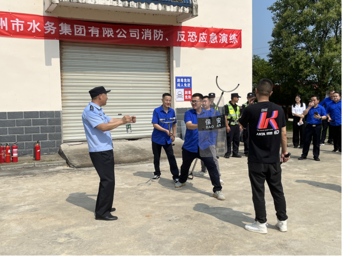 在反恐演練環(huán)節(jié),隨縣公安局民警首先為大家講解了盾牌、鋼叉等各種反恐防暴器具的使用方式和技巧。現(xiàn)場(chǎng)模擬一名“歹徒”持斧闖入封江水廠,防暴大隊(duì)民輔警快速響應(yīng),針對(duì)現(xiàn)場(chǎng)情況,果斷采取有效措施,運(yùn)用盾牌、鋼叉等防爆器械,針對(duì)“歹徒”的各類暴力情形,采用三角隊(duì)形進(jìn)行靈活處置,成功將“歹徒”制服。隨后,在民警指導(dǎo)下,市水務(wù)集團(tuán)應(yīng)急救援隊(duì)開展了模擬反恐演練。