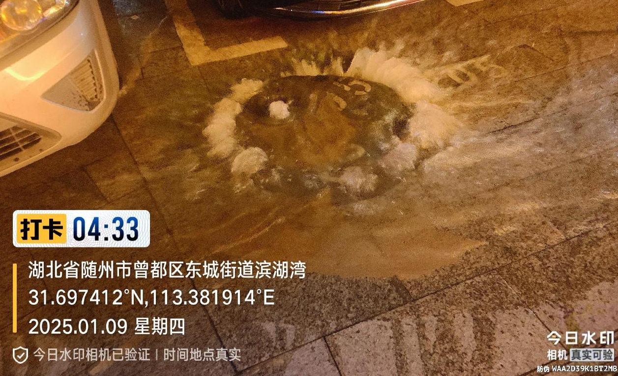 1月9日凌晨4時,隨州水務(wù)熱線電話驟然響起。“濱湖灣小區(qū)門口水管破裂,水一直在往外冒!”電話那頭,群眾焦急的聲音傳來。這通熱線,如同戰(zhàn)斗的沖鋒號,城市供水公司運維中心工作人員迅速響應(yīng),在接到指令的第一時間,便迎著刺骨的寒風(fēng)奔赴現(xiàn)場。