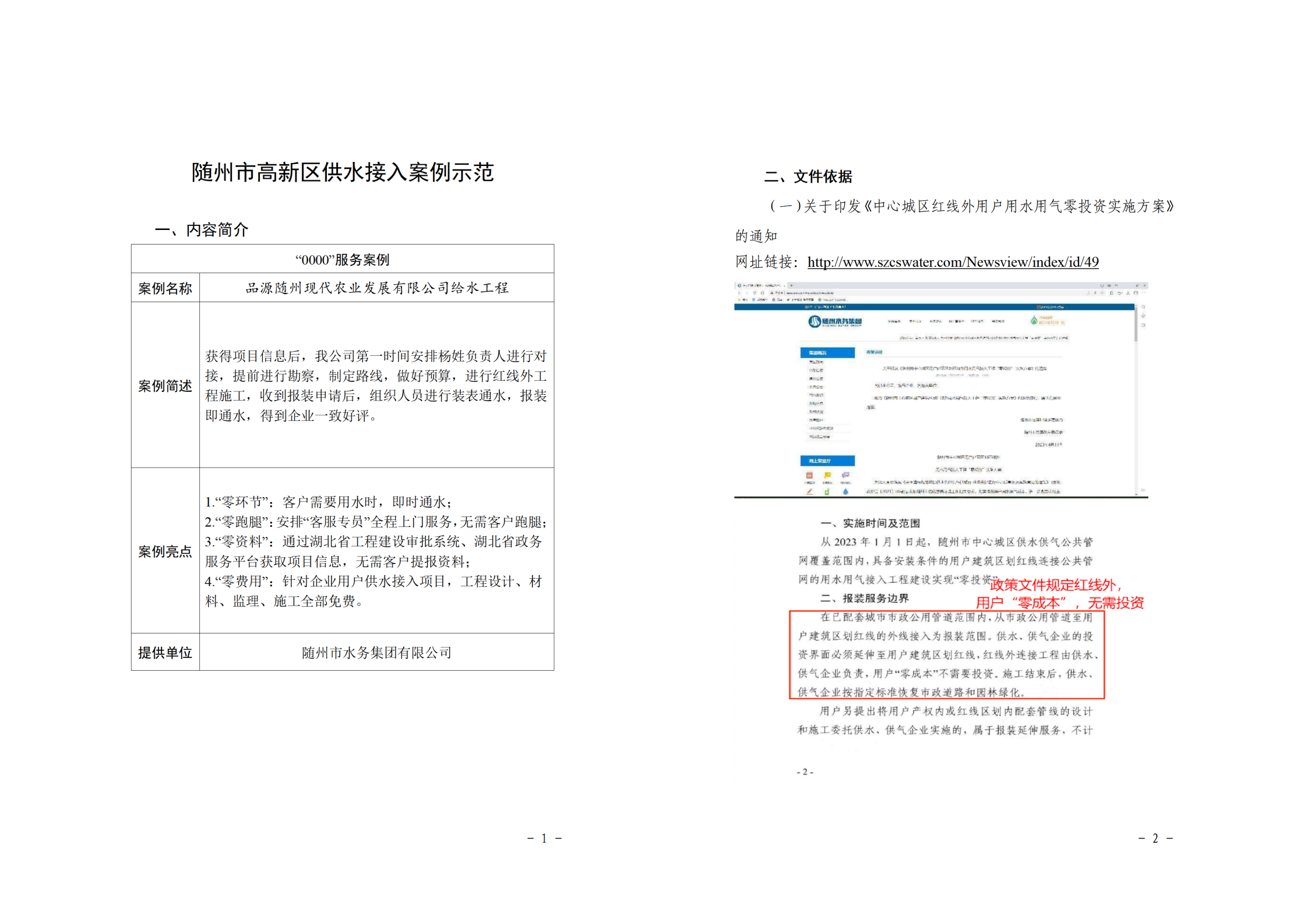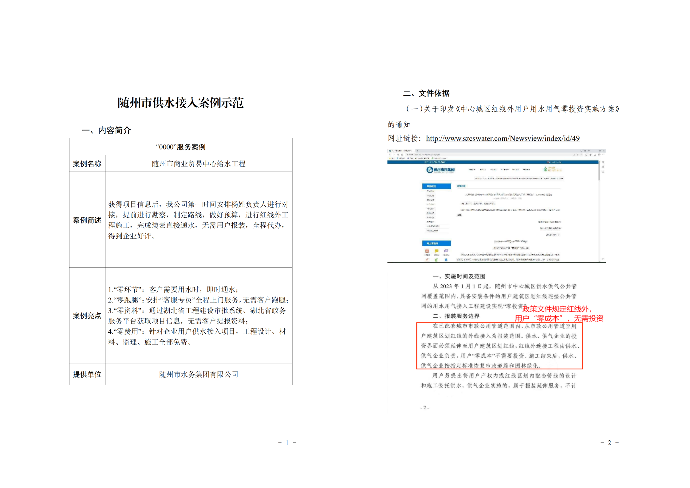 隨州市水務(wù)集團供水接入案例示范(中心城區(qū)、曾都區(qū)、隨縣、高新區(qū))