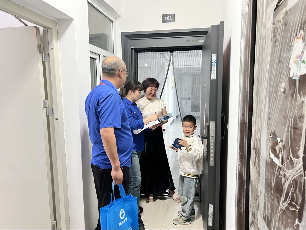 活動現(xiàn)場,水務(wù)工作人員化整為零、分組而行,輕叩一扇扇居民家門,讓 “藍(lán)色服務(wù)” 走進(jìn)萬家。“阿姨,您看現(xiàn)在用手機就能繳水費,還能隨時查用水量呢!” 在居民王女士家中,小區(qū)網(wǎng)格員手持手機,指尖在 “隨州水務(wù)” 公眾號界面流暢滑動,賬單查詢、故障報修等功能演示得清晰明了,同時將用水安全知識化作通俗易懂的家常話,娓娓道來。記錄用戶信息的筆尖在紙上沙沙作響,每一個細(xì)節(jié)都彰顯著服務(wù)的溫度。這般貼心周到的模樣,惹得居民們笑意融融:“這群‘藍(lán)朋友’比外賣小哥還及時、還用心!”